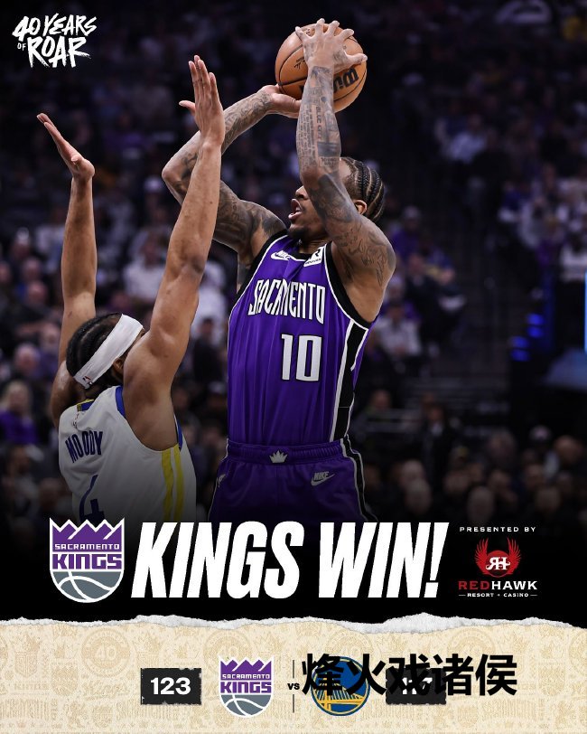 国王(23-20):德罗赞32分5篮板、萨博尼斯26分18篮板3助攻、蒙克20分4篮板9助攻3抢断、福克斯14分5篮板5助攻、穆雷13分3篮板