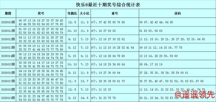 福彩快乐8第2026019期开出奖号:16 20 21 23 24 37 48 51 52 53 54 59 60 62 66 68 75 76 77 78,其中奖号奇偶比为8:12,大小比为14:6,包含4个重号21、23、75、78,包含连码20 21、23 24、51 52 53 54、59 60、75 76 77 78。